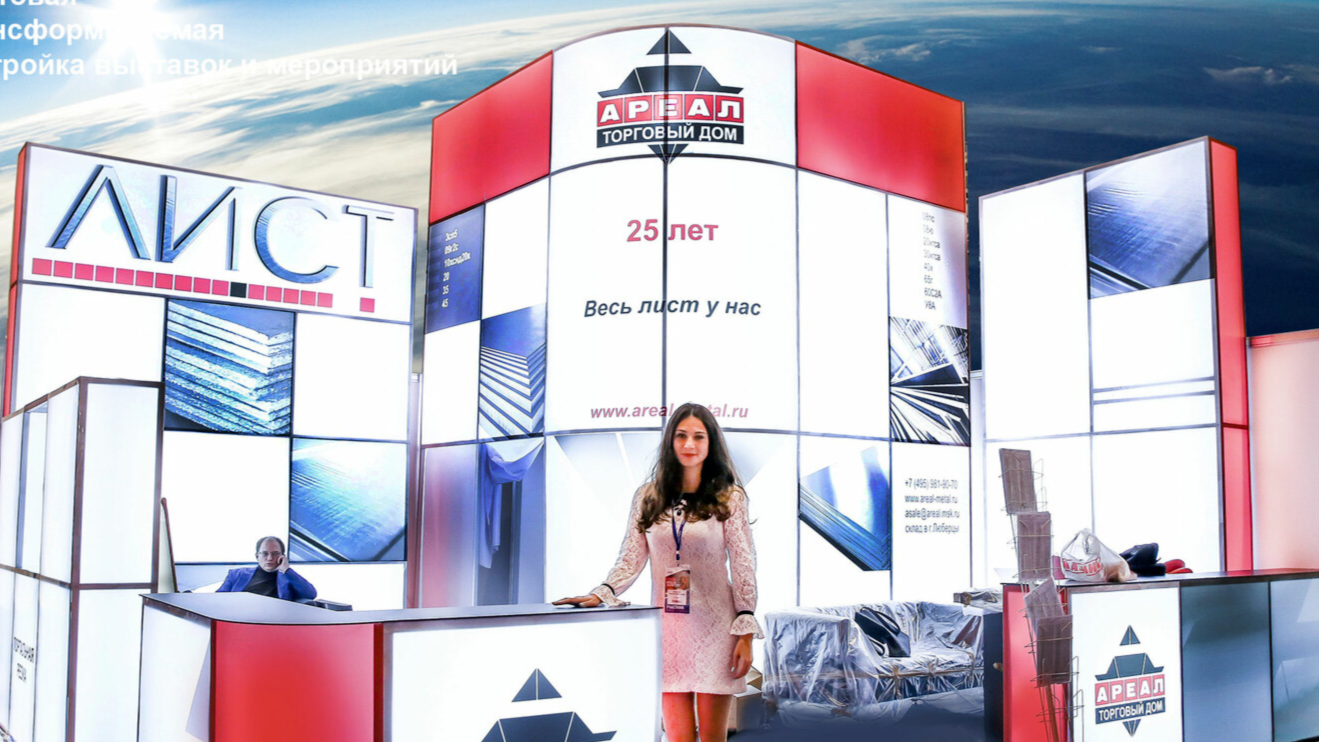 - Экономия за счет модульной трансформации стенда на разные площади